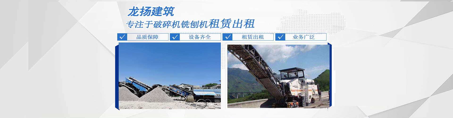 安徽龍揚建筑工程有限公司是一家知名的大型建筑機械租賃企業之一。公司管理完善,組織機構健全,技術力量雄厚。經營范圍:銑刨機、水泥路面多錘頭破碎機、灰土拌合機、冷再生機、夯實機、攤鋪機、挖掘機、粉料撒布車、平地機、清掃機、壓路機等各種機械租憑業務。另承接石灰、沙石、水穩攤鋪等業務。廣泛服務于農業建設、小區綠化、場地平整、鐵路、高速公路等建設。公司業務范圍廣泛,在外省等地服務過數百處大中型建筑工程,與客戶建立了良好的合作關系,參加建設了云南、四川、貴州等省市區數百處市工程和大型公建及住宅項目,公司成立以來通過嚴格的管理和務實的經營理念,在同行業中樹立了較高的信譽。